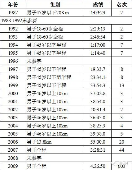 1996年曾启顺因为参加全国工人运动会,因此没有参加杭州马拉松。