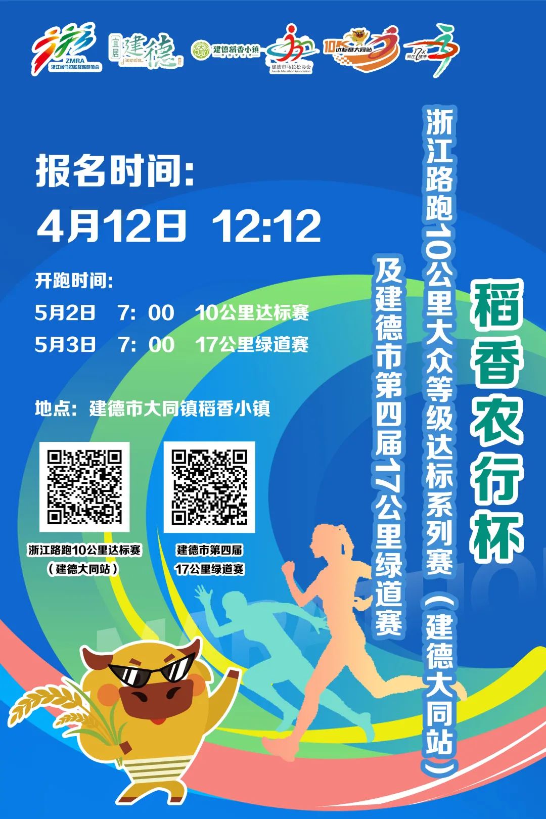 浙江路跑10公里大众等级达标系列赛,从舟山开始,到金华、衢州、嘉兴、温州、宁波、湖州,杭州建德站的报名也开始了,建德大同站的相关信息如下 :