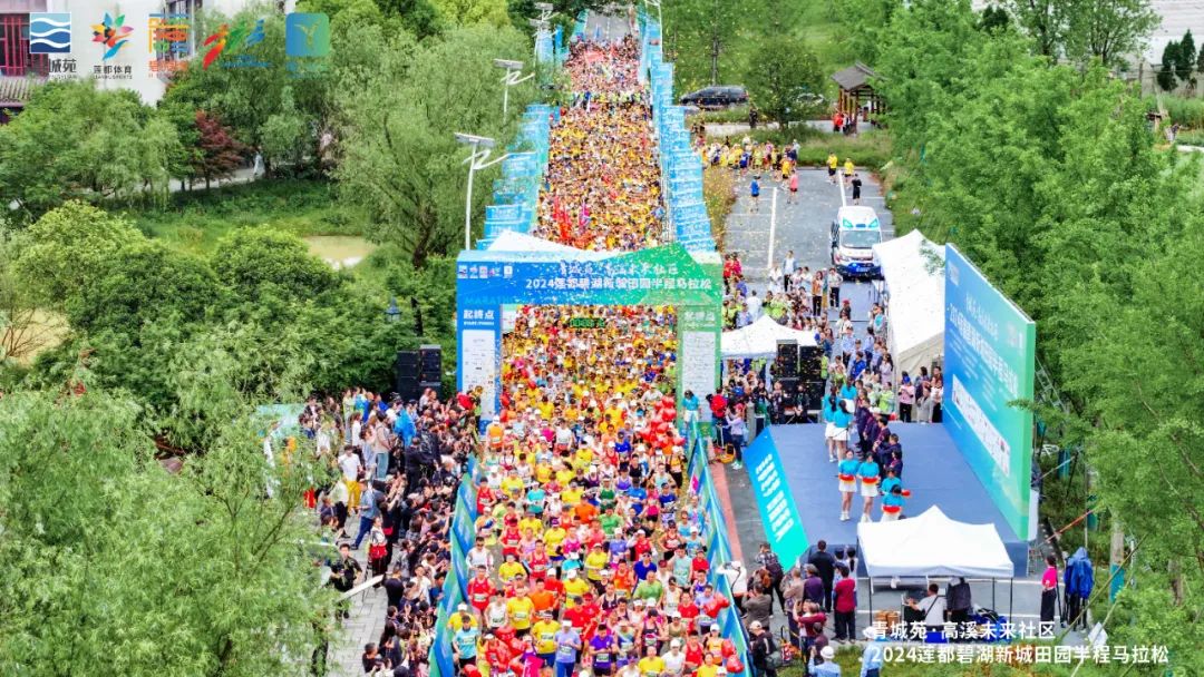 随着发令枪响,4000名跑友在观众的助威声中,沿着平坦清新的赛道奔跑!