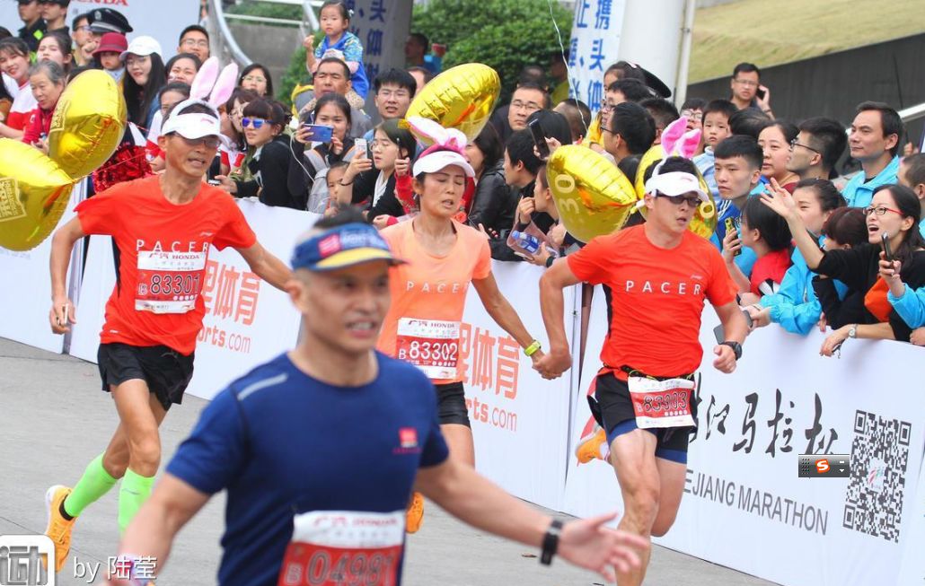 马拉松赛道上通常有一群特殊的跑者,三、五一组,统一着装,步伐矫健,跑速均匀,时不时还和跑友互动,为跑友递水递物,鼓励跑友安全完赛,带领跑友以最轻松的方式跑完全程,帮助尽可能多的跑友实现目标。如2018年第三十二届杭州马拉松的赛道上就有这样的群体,头戴兔子帽,身披 pacer袍,腰佩手机包,脚穿护腿套,足上的李宁战靴,或骏烈或战斧或追风,轻便舒适、轻灵飘逸;头上的气球高高飘扬,或红或紫或蓝……,绚丽夺目、分外亮眼;气球上的数字尤为醒目,或3:00或3:30或4:00……女生远看花木兰,近看穆桂英,花容月貌,英姿飒爽;男生远看赵子龙,近看岳鹏举,相貌堂堂,气宇轩昂。这就是千里挑一、优中选优产生的来自全国18个省市区38个城市的被称为移动计时器的杭马官方兔子。所谓兔子,即pacer,亦叫领跑员、配速员、定速员,是带领跑友以某一事先设定的配速匀速跑完全程、帮助跑友实现目标的跑者。兔子最早产生于1999年的巴黎马拉松,兔子一般会根据跑友的完赛群体分布被设置若干小组,如2018年杭马依据大数据的科学分析,合理设置了300、330、400、430、500、530、600、半马收尾、全马收尾共9个组别42位兔子。
