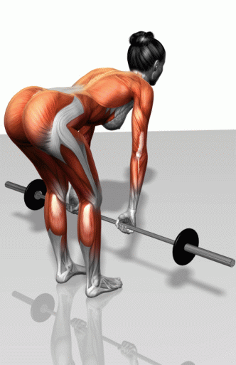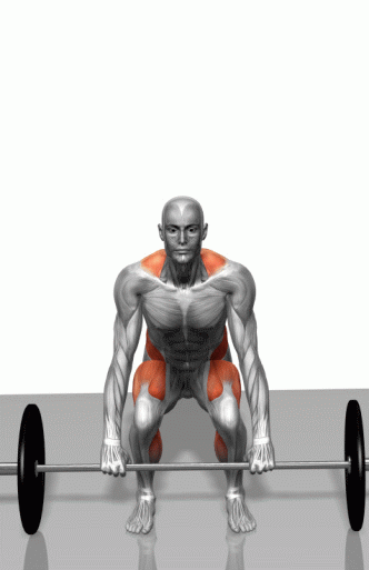通过伸膝关节和髋关节,联合背部、髋部和大腿的力量,上提杠铃,还原。重复上述动作。