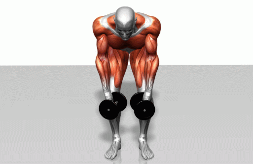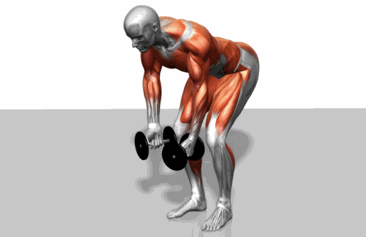 双手握哑铃,单脚站立两手与地面重直,俯身让上半身与地面基本平行,还原。重复上述动作。