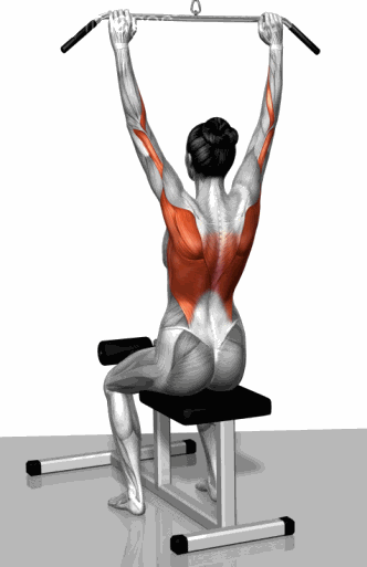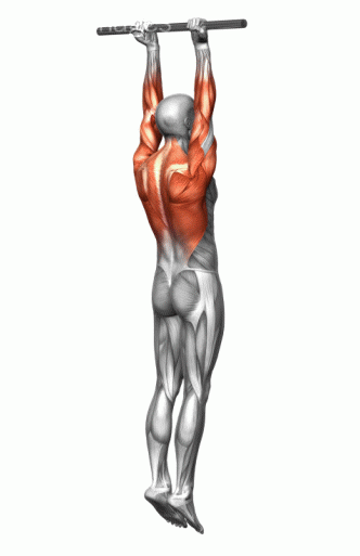 身体向上牵拉,使上胸部至横杠处,然控制身体缓慢下降。重复上述动作。