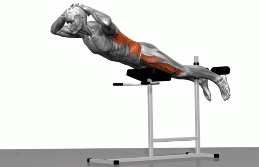 通过弯曲腰部使身体向下,背部挺直,抬起身体,直至躯干与腿平行。重复上述动作。