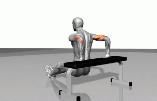 避免强力运动,缓慢地进行可控制运动。避免弓背,保持挺胸,两肩下沉。集中应用胸肌和肱三头肌的收缩力。向上推撑身体时呼气。