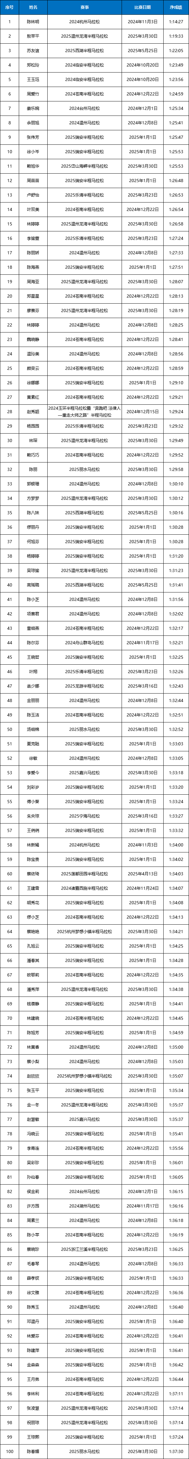 【女子半马前100】