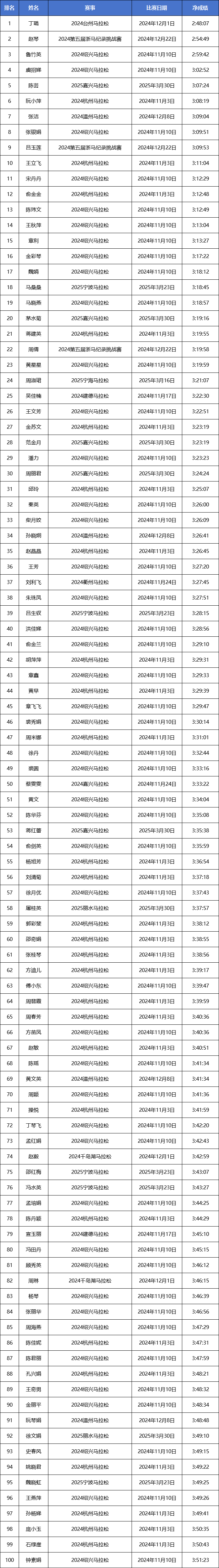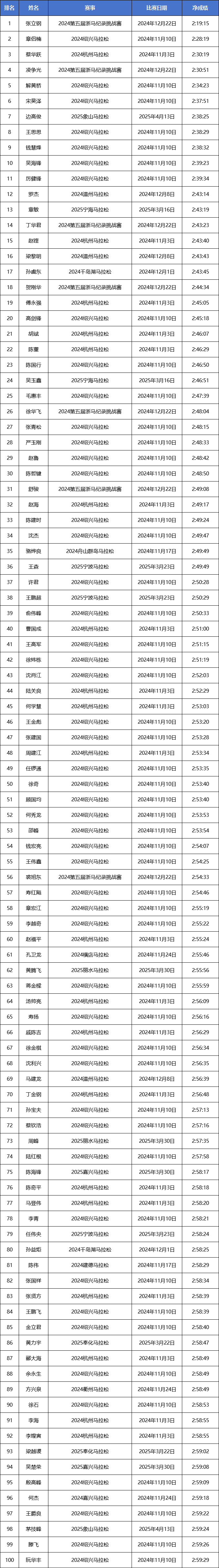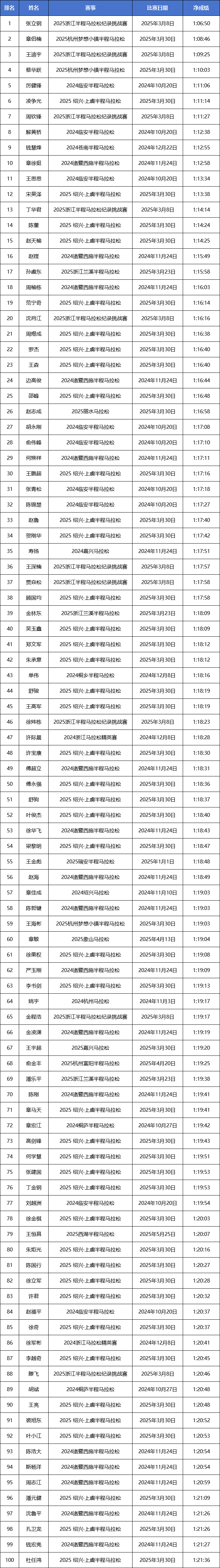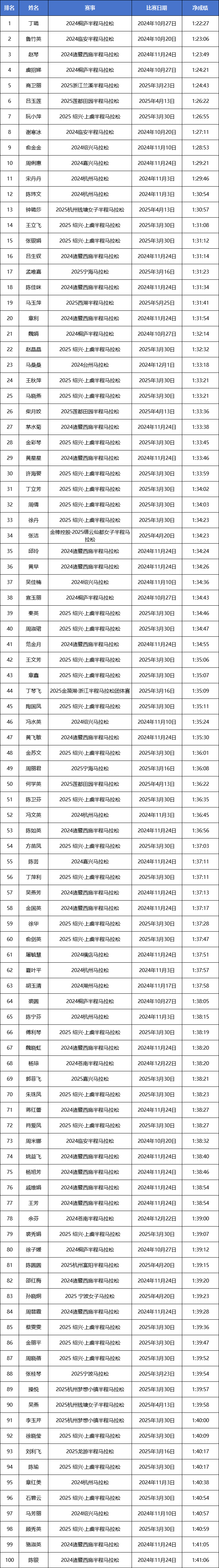 2024-2025年度浙马积分赛季结束,现将2024-2025赛季浙江马拉松积分赛男女子(绍兴市)全马与半马前100名名单予以公示,以跑友身份证号码前6位及住址为准,有异议可发邮箱:marathon@zjim.org,公示期:即日起7个工作日,联系号码:0571-85375543。