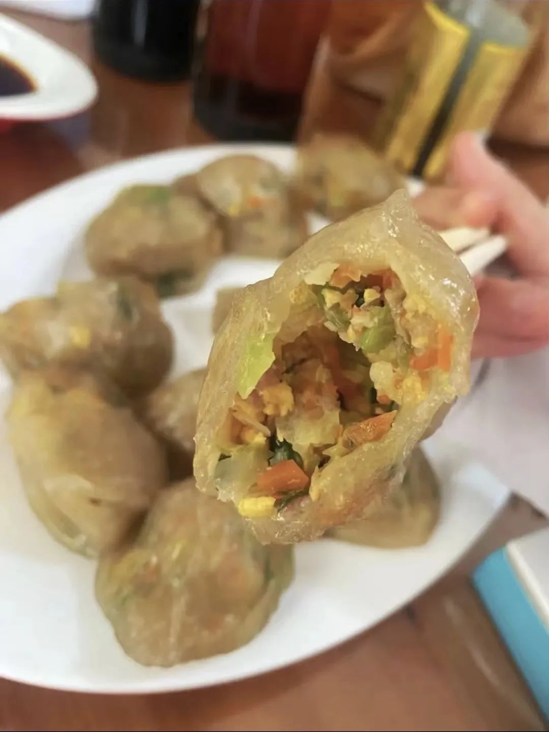 百里楠溪禾黍香,古村一禾金粉饺。楠溪金粉饺是永嘉县的特色美食,位于枫林镇的“一禾金粉饺”深受大家喜爱。将肉严格按照三分肥七分瘦的比例绞好,加入优选的香菇、胡萝卜、鸡蛋等食材搅拌,再把馅料放入红薯粉制作而成的面皮,包成饺子形状,隔水蒸熟。食之滑而不腻,鲜香多汁,Q弹有嚼劲!