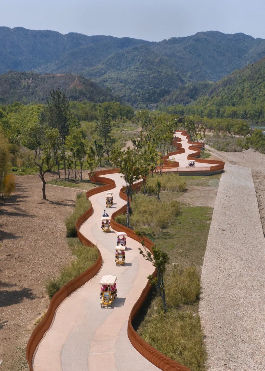 楠溪江绿道,是一条集观光、休闲、运动为一体的生态绿道,也是体验永嘉山水美景、感受乡村文化的重要窗口,途经狮子岩、枫孤溪等多个风景点,不仅提供了便捷的游览通道,也让游客能够更加亲近自然,感受楠溪江的秀美风光。在绿道上,可以惬意漫步,可以租车骑行,“绿野仙踪”更是婚纱摄影的热门取景地。