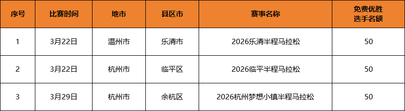 2026年度浙江马拉松积分优胜选手免费直通名额申请开放中!